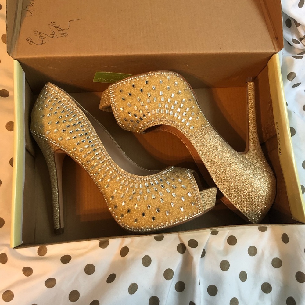 Cathy jean gold heels for sale. Worn once, in great condition.