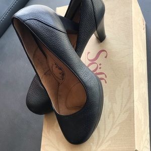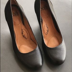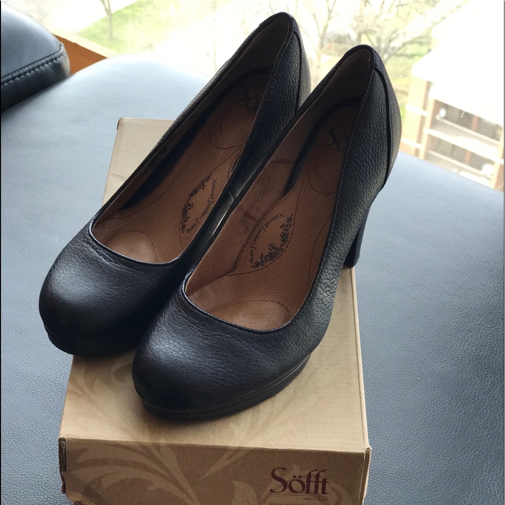 Black leather heels size 7 Medium women worn maybe a handful of times still in very good condition