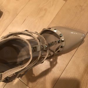 Brand new never worn heels. 3 ankle straps with gold gems