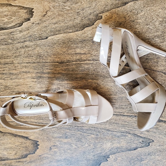 Nude strappy heels