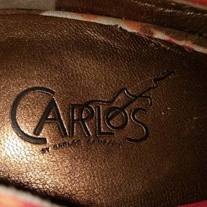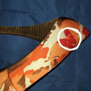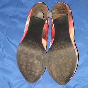 Red, white, brown, and orange shoes