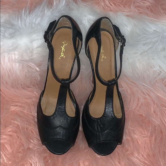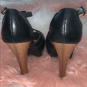 Super cute platform heels!! These are faux leather material. The heel itself is wood. 💕