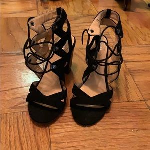 Black laces up heel