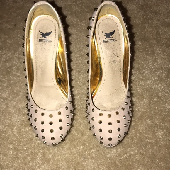 Beige/blush with gold spike heels minor wear marks see pics good condition
