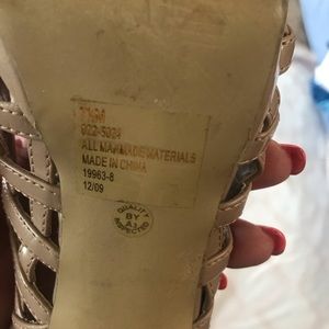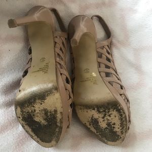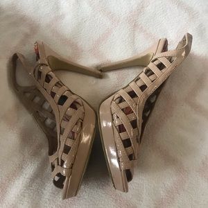 GUC cross posted no trades Fabulosity cream heels 7 1/2M 4 1/2in heels with a cross cross pattern