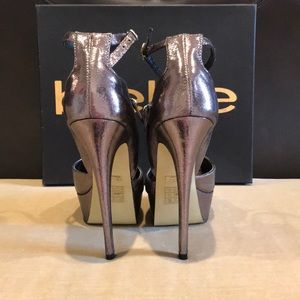 Very Sexy platform Bebe heels! Size 7 wore 1 time! Color: Pewter.... wore with Stunning Red and Pewter Bebe dress also listed on poshmark! Comes with box! 💋💋💋