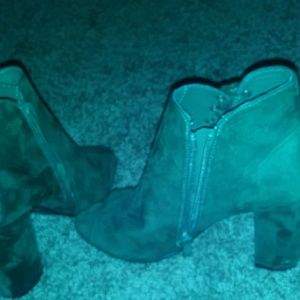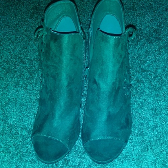 Green tie up and zip heels