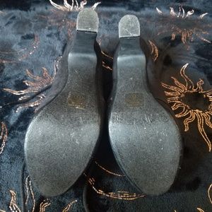 Black velvet heels. Brand says "D"