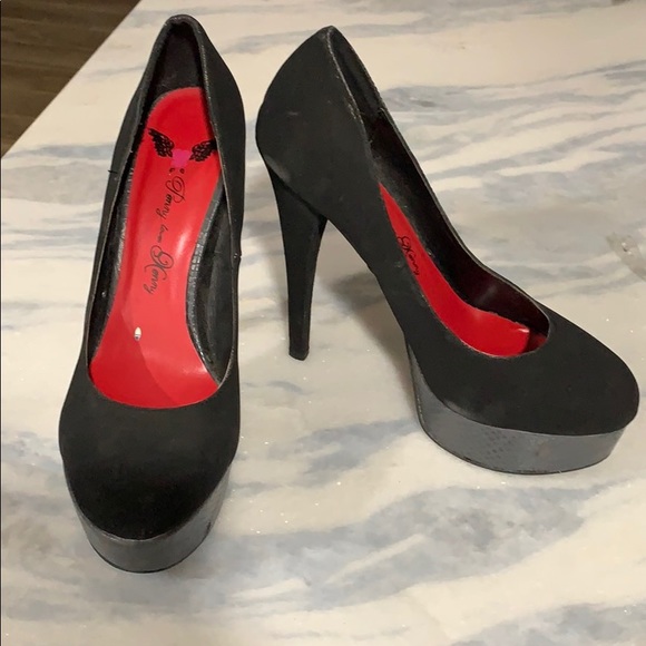 Black, front platform heels. Only worn a few times. Great condition
