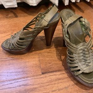 Open toe green Frye heels