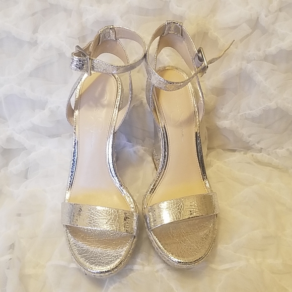 Gorgeous Jessica Simpson wedge heel with snake print like features sandals. Super comfortable, 5 inch heel with platform.