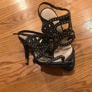 BCBG black leather upper heel sandals