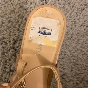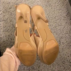 Beige Nine West heels! No box for these. Super cute and comfortable. The right heel has the tag on it still.