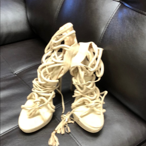 Here’s a pair of gorgeous tan straps heels that have been worn only a couple of times. Great condition and ready for a HOT new owner!