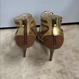 Caramel and gold open toe sandals