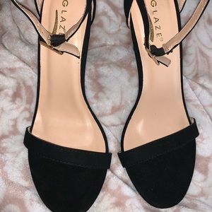 all black Glaze heels with a beige bottom , a belt like strap for the ankle 👠!