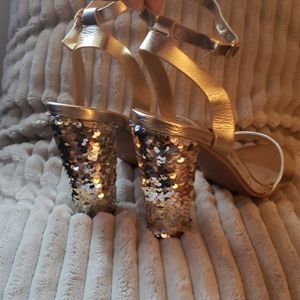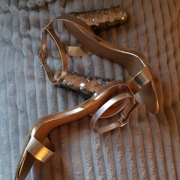 Gold strap sandal heel