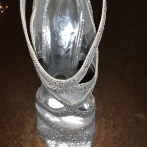 Sugar high heels. Worn one day for prom. Matches great with black dress. Zip up heels.