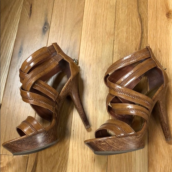Brown heels/sandals worn once! Doesn’t have a size tag, but it fits size 5. Does have 2 minor scratches, but they are not visible when having them on. Open to offers! Let me know if you have any questions!