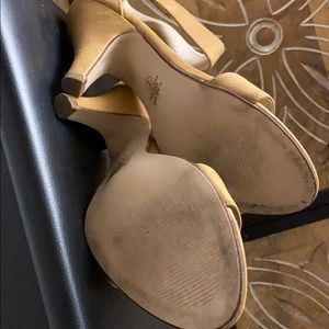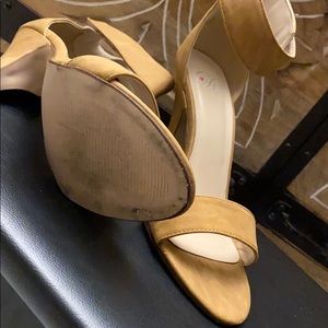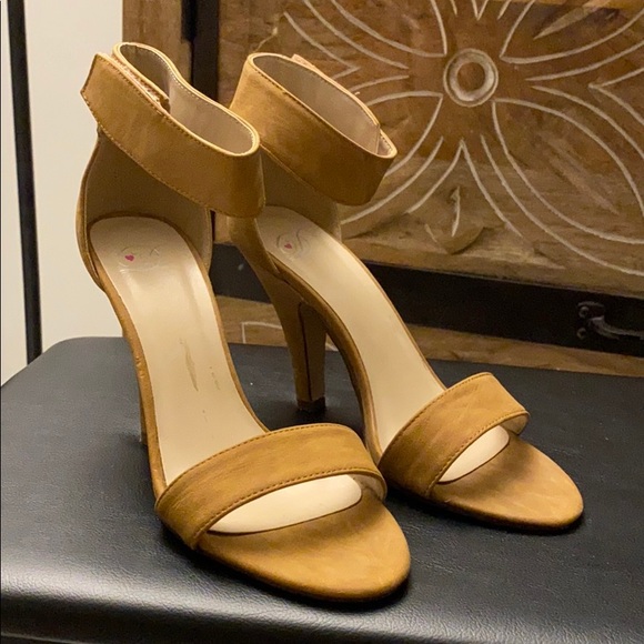 Tan strap heels suede like material