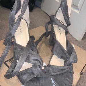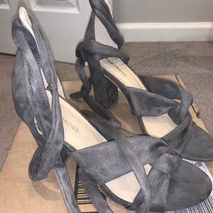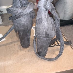 Grey suede lace up heels Never worn Size 10