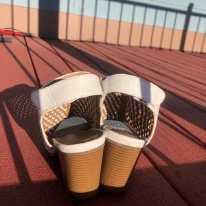 Velcro closure in back. Open toed. Cute design. Like new. Worn only a couple times.