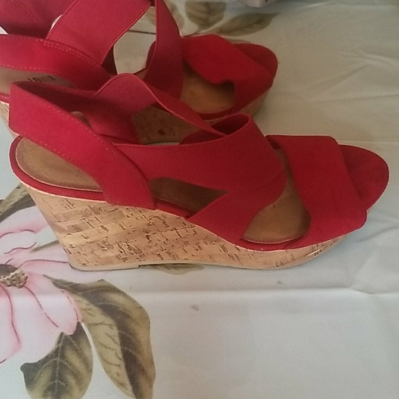 Red wedge heel with straps