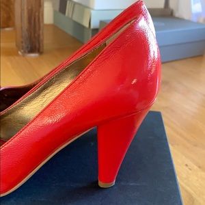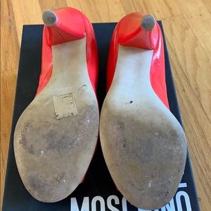 Love Moschino red heart heels. Worn only a few times still very good condition. Peep toe.
