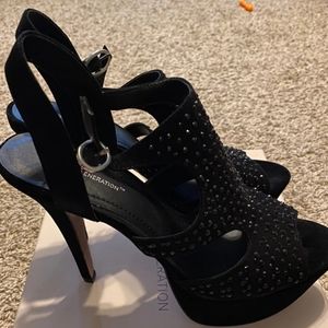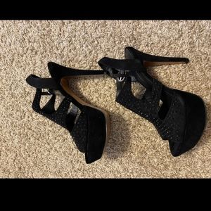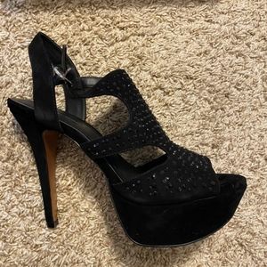 *new* beautiful blacl bcbgeneration size 10M heels microfiber suede material with black rhinestone design..never been worn goes perfect with any outfit..