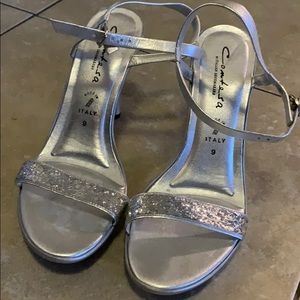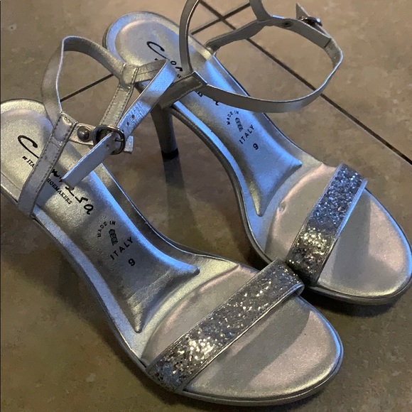 Silver heels with sparkles on the bottom// by Italians shoemakers