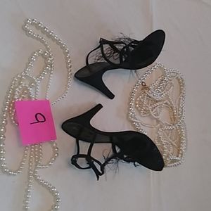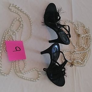 Black heels lightweight little feathers. Little black stones up the center strap barely worn kept in original box
