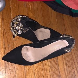 @davila7572 one gem on the left heel and 6 on the right. And they are 3 inches.