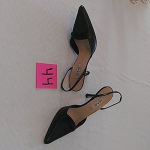 Black leather sling back heel little bow on front like new barley worm kept in original box