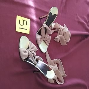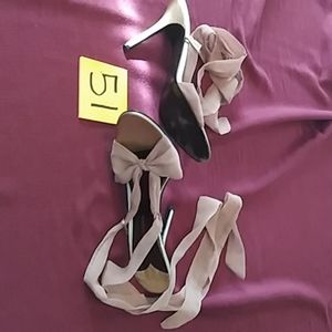 Gold heel with cream colored cloth ties all up your leg in real good condition kept in original box