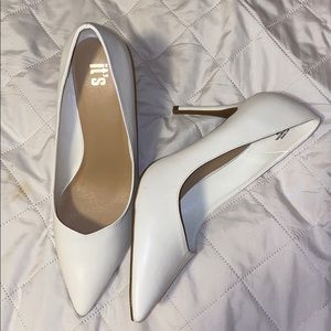 White heels, closed in toe. All man made material Size: 10