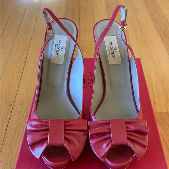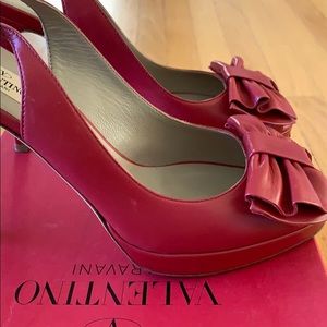 Valentino slight platform red bow heels. Worn a handful of times, comfortable, elegant. Comes with box and dust bag. Fits true to size 38 or 8.