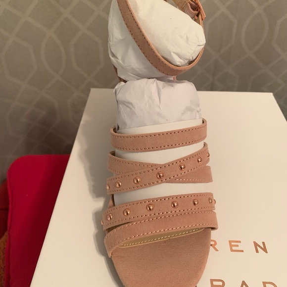 Gorgeous heels in size 8 look great with a dress or jeans. Color is pinkish(mauve) color in suede with gold accents