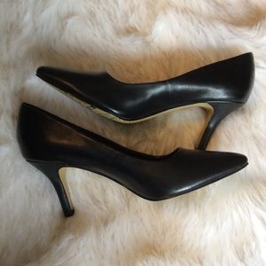 New Black leather heels WORN ONCE, excellent condition.