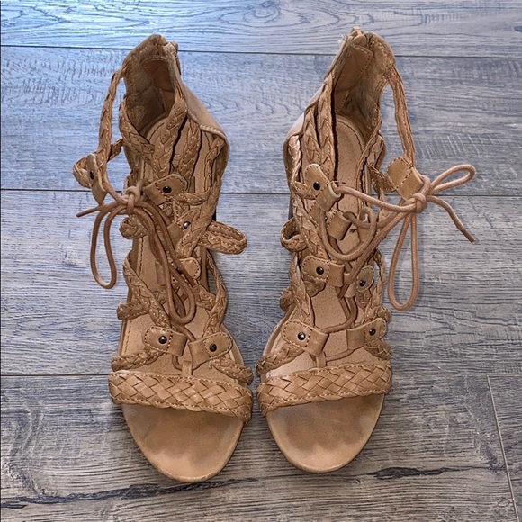 nude lace heels with back zipper