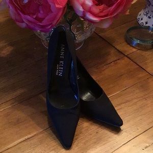 Anne Klein silk dress heels. 3 1/2 “ heel height. Worn twice with a little wear on the bottom of the heel as pictured