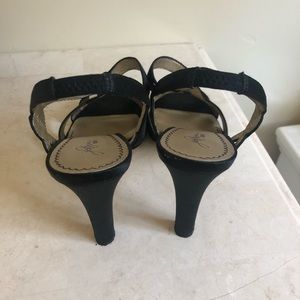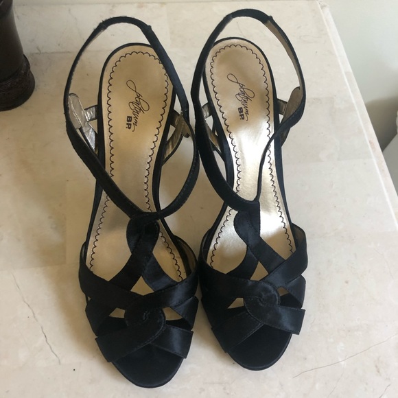 Black satin strapped heels