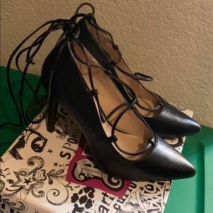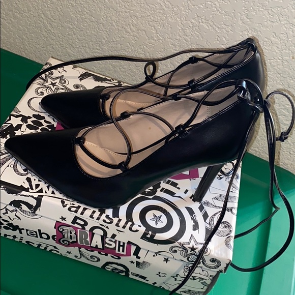 Heel: 3.5 inches Tie around lace to wrap around Good condition