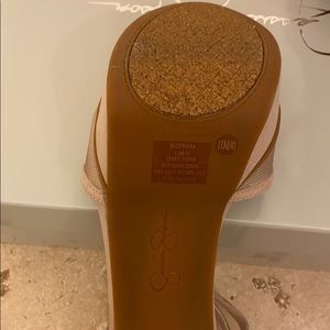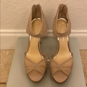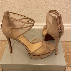 Women’s platform mesh and suede sandals.