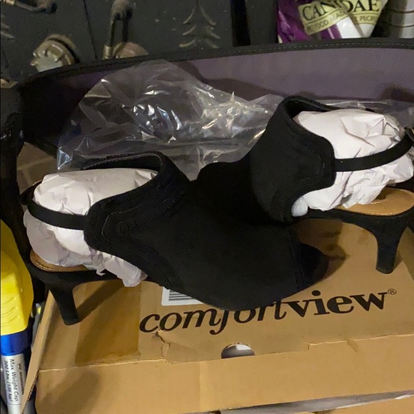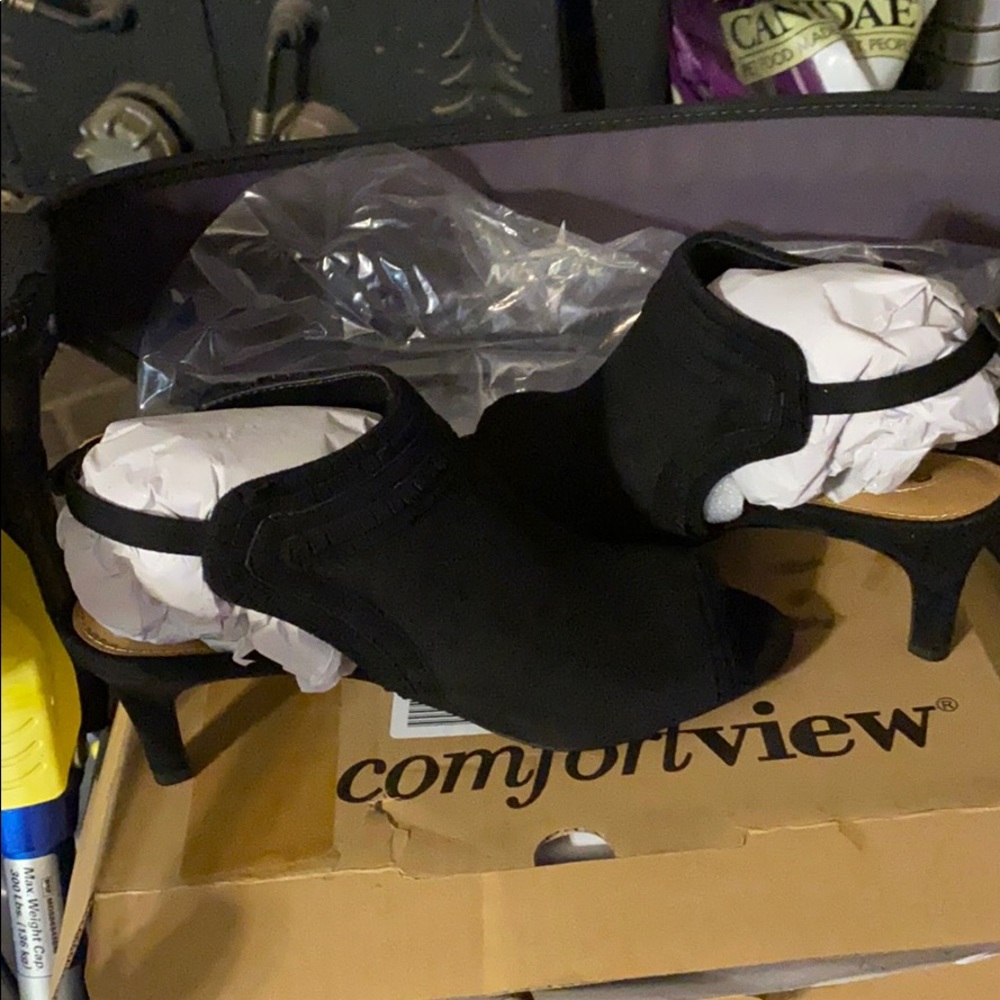 Black comfort view heels hill about an inch tall eight double Wides very comfortable brand new still wrapped up in the plastic