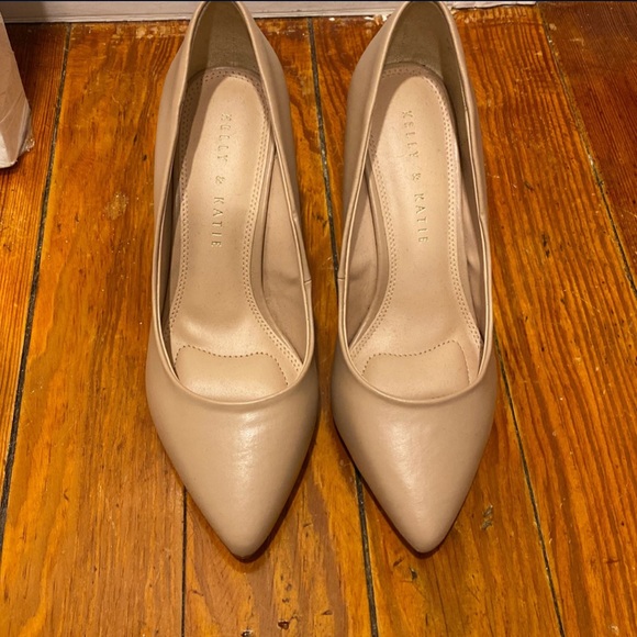 Brand new 2in heels. Used once, many years ago, just not my sz anymore. I’d describe the texture as matte. They are comfortable.