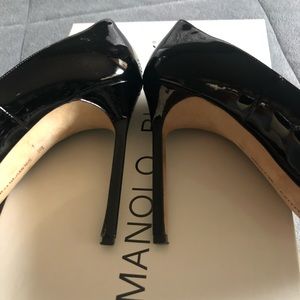 Pat and leather black designer heels, wore twice heel is to high for me. Comes with dusk bags and original box and gift receive from Bergborf Goodman. In excellent condition