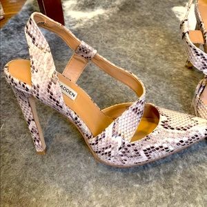 Snake skin Steve Madden Heels. Strap on back, easy to walk in! Worn one time. Half off!! ⭐️