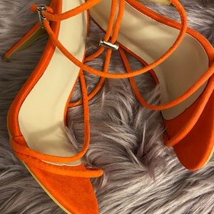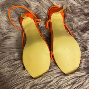 Cute bright orange heels. Available in a size 9. Heel height is approximately 3 inches..suitable for date nights and would go well with dress.. jeans...skirts or shorts.
