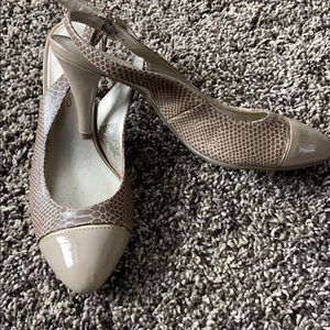 Adjustable strap closed toe heels. Heels 2” high