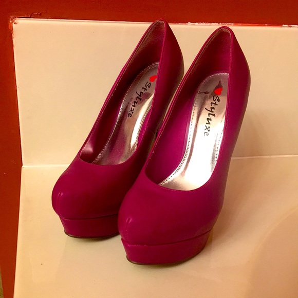 Platform heels that is a really unique purple, they are worn with a little scratch on heel.